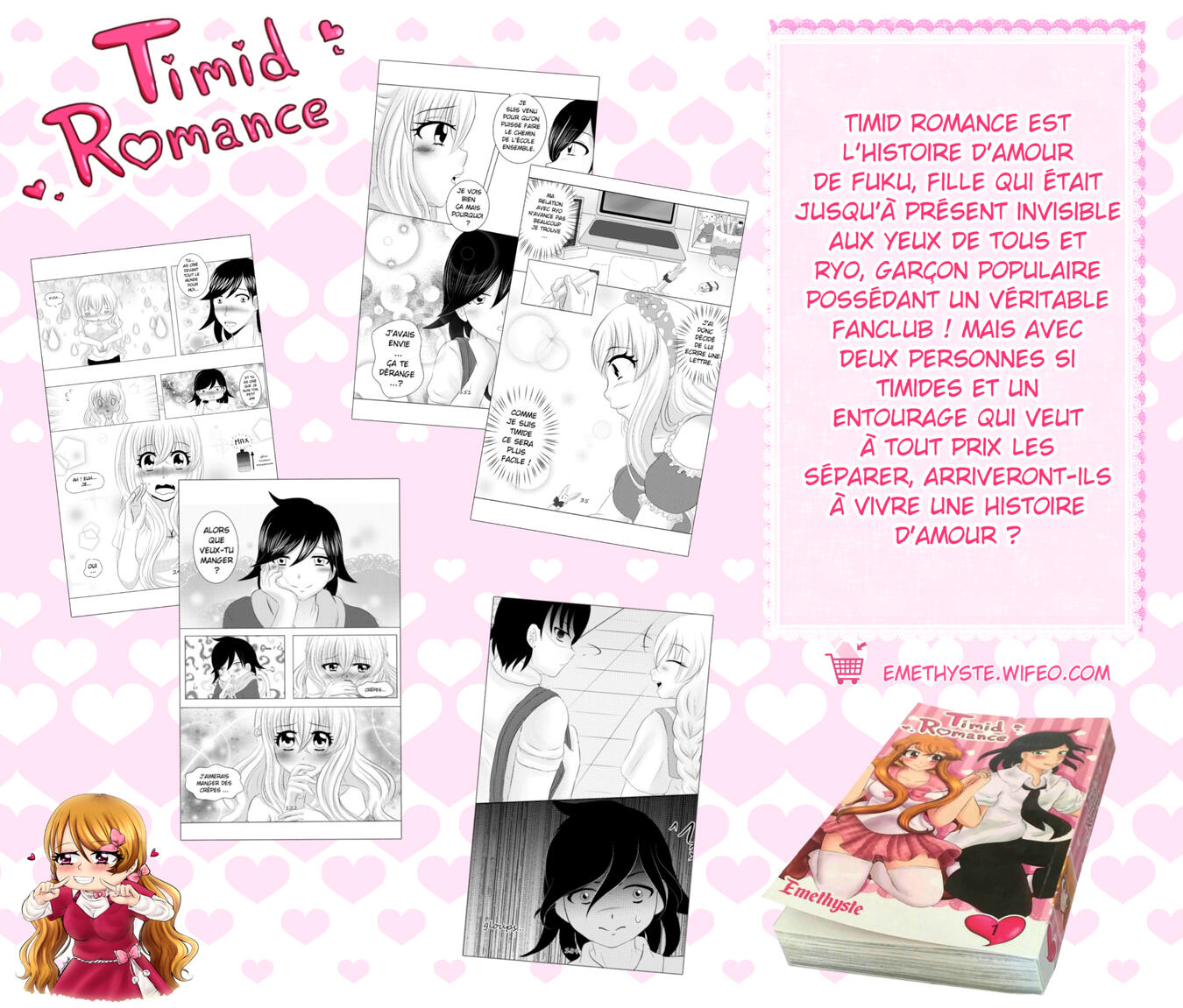 Timid Romance est l'histoire d'amour de Fuku, fille qui était jusqu'à présent invisible aux yeux de tous et Ryo, garçon populaire possédant un véritable fanclub!